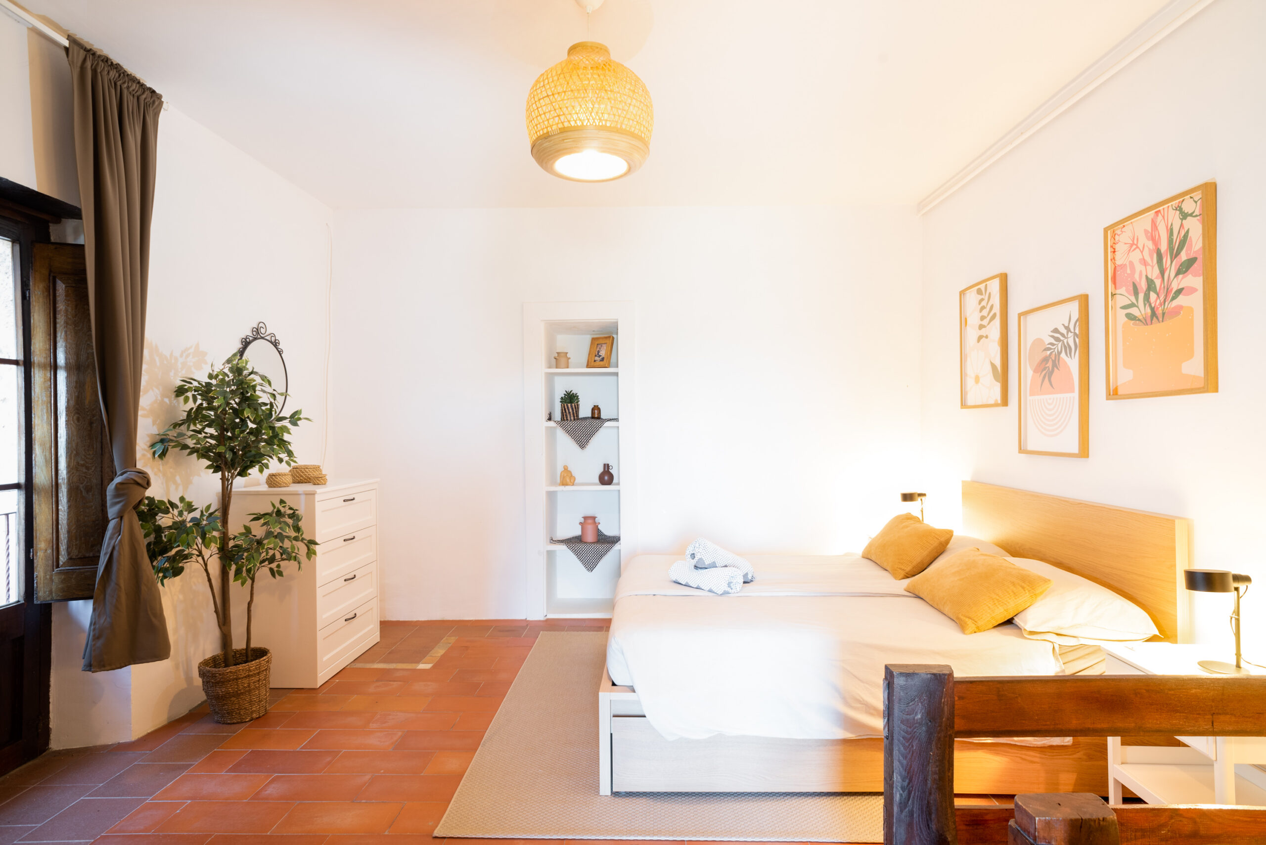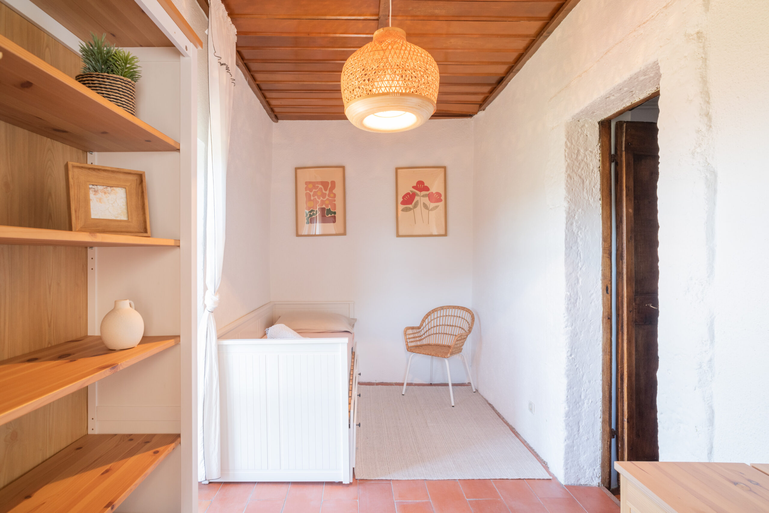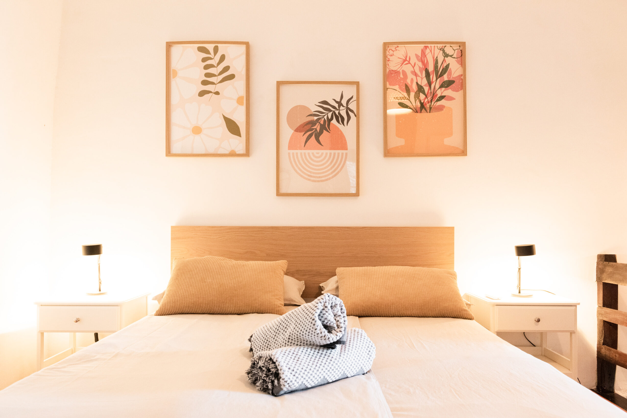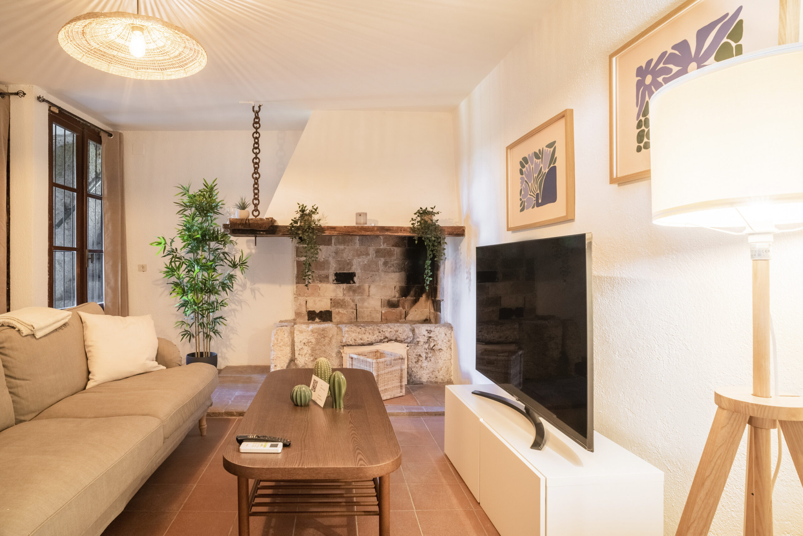 Lejligheden er velegnet til en familie med to børn, da man skal igennem det ene værelse for at komme til det andet. Indretningen består af et stort køkken-alrum, tilhørende stue med adgang til badeværelse med badekar samt en overdækket terrasse. På første sal finder du et soveværelse med dobbeltseng og adgang til et mindre værelse med sovesofa. Begge etager har aircondition.