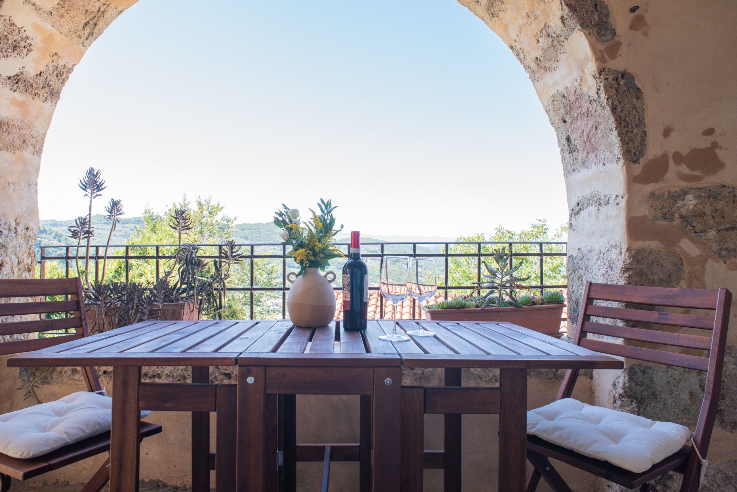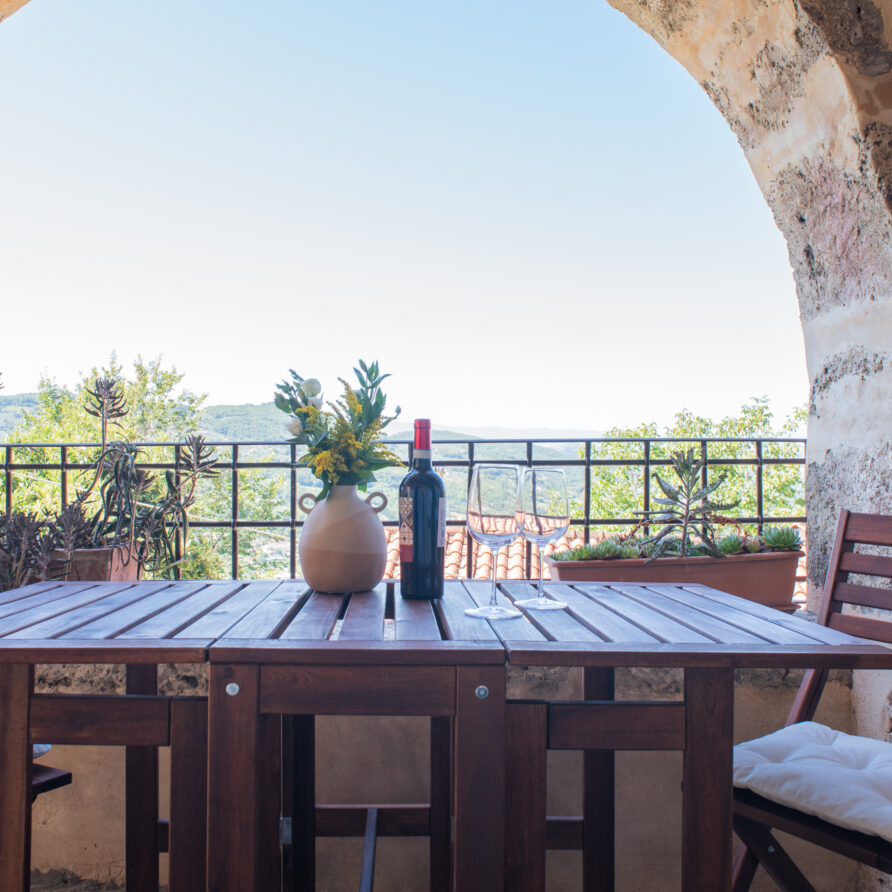 Boligen i Arpino er helt unik. En lejlighed i to etager i et gammelt vagttårn, fyldt med sjæl og charme. Fra boligen har du en fantastisk 180 graders udsigt over Liri-dalen, og fra terrassen kan du nyde både morgensol og aftenglød.