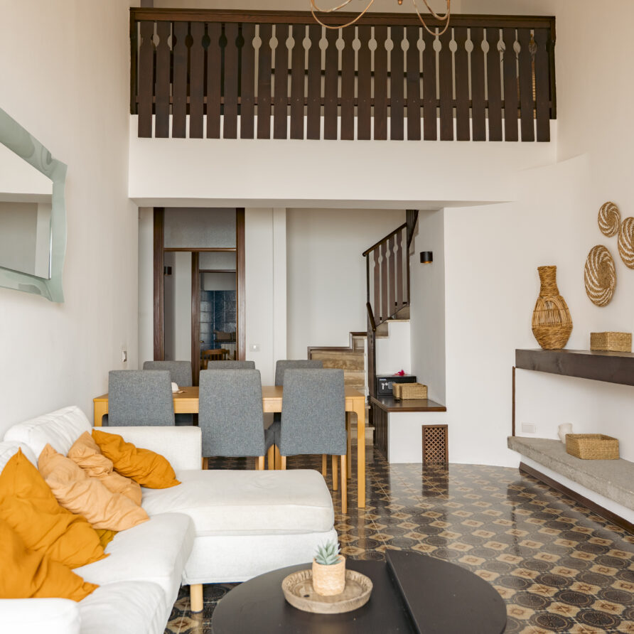 Meget smalle veje og mange trapper til boligen.