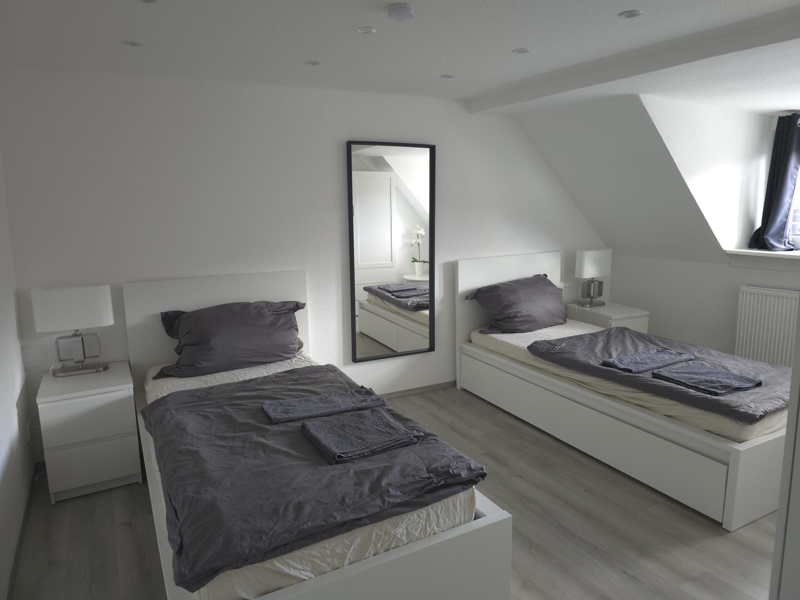 Virkelig fin lejlighed i to etager, centralt i Goslar. Store soveværelser med masser af skabsplads. Veludstyret, mindre køkken. Meget fint med pulterrum, hvor vaskemaskinen stod. TV-stuen ovenpå er et hit.