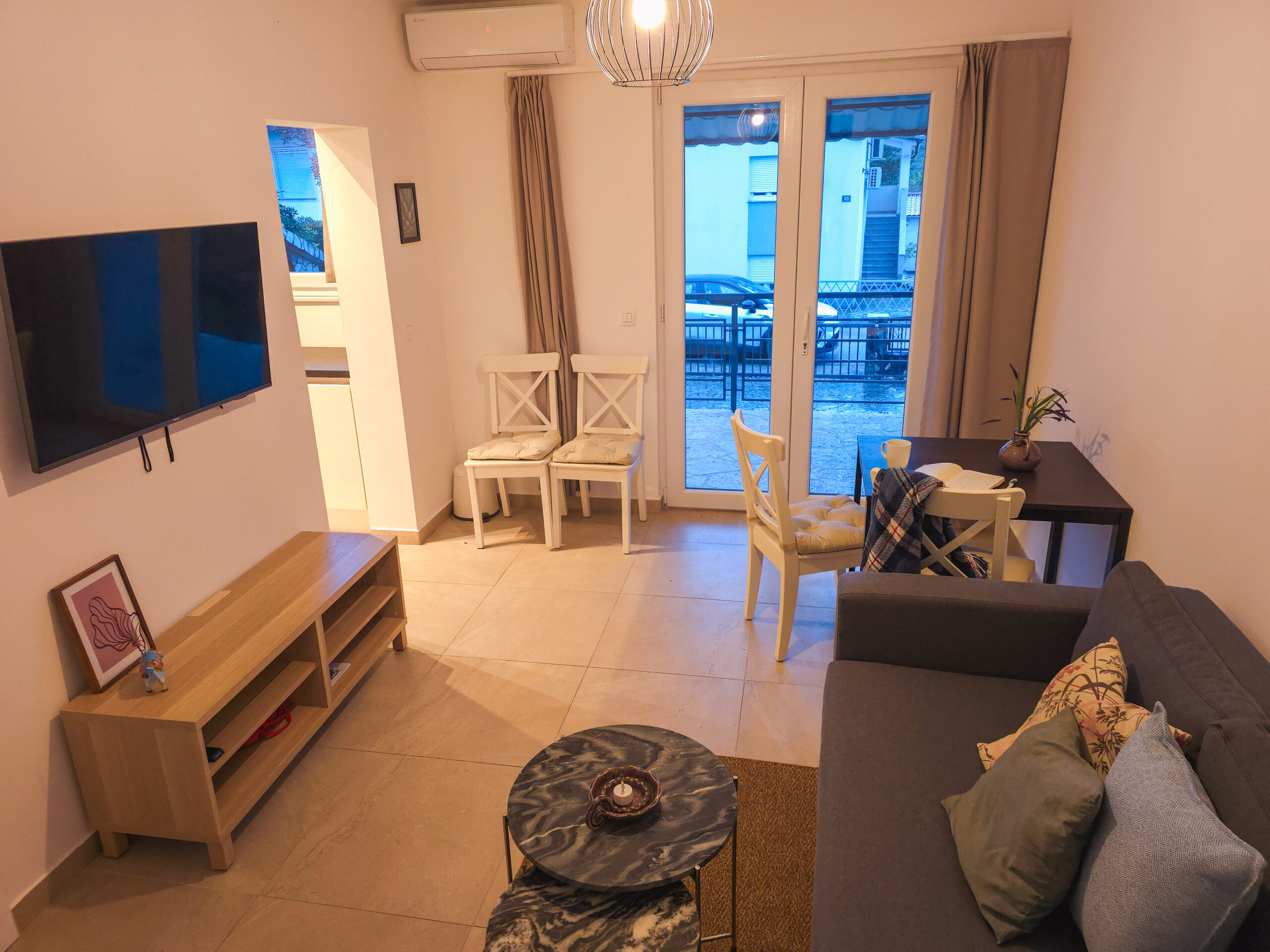Karin Punta st.th. er en nyrenoveret feriebolig, indrettet med køkken-alrum/stue, badeværelse og separat soveværelse. Lejligheden er bedst egnet til to voksne, men har også plads til to børn på sovesofaen i stuen. Perfekt til den lille familie, der ønsker en enkel og funktionel base tæt på vandet.