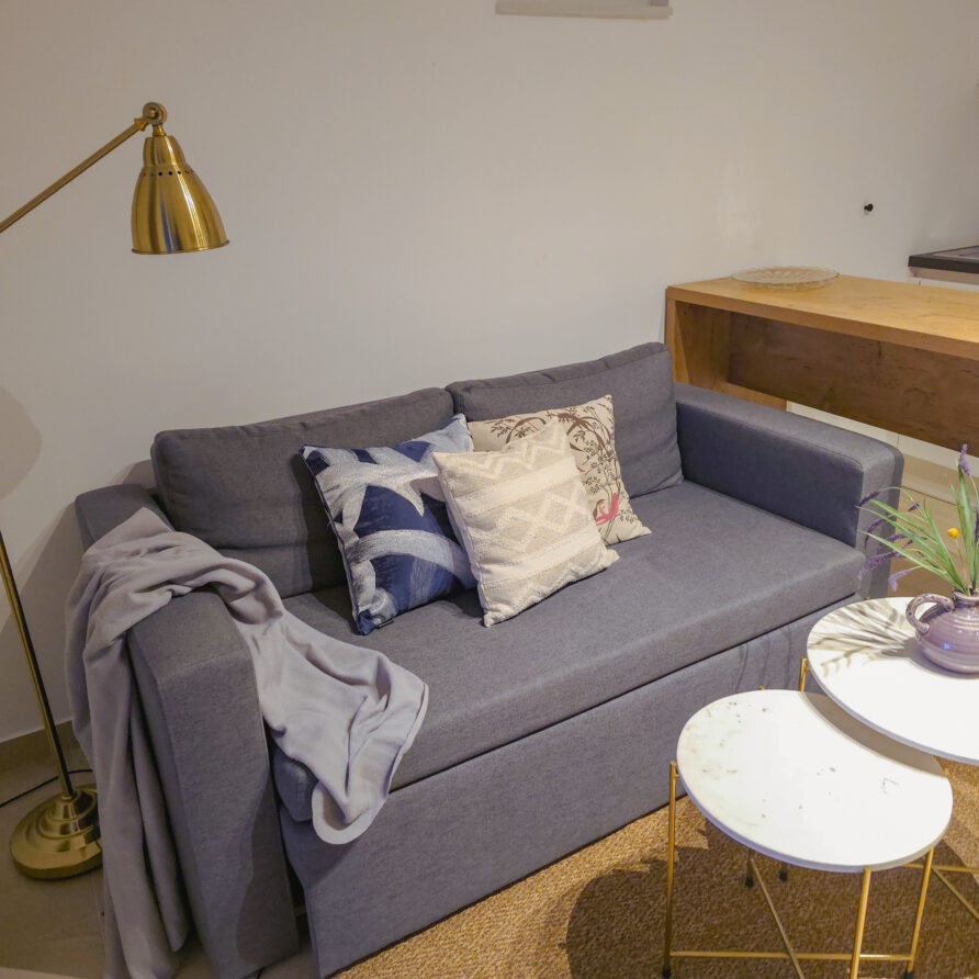 Karin Punta st.tv. er en lille, nyrenoveret lejlighed, indrettet med køkken-alrum/stue, badeværelse og separat soveværelse. Lejligheden er bedst egnet til to voksne, men har plads til to børn på sovesofaen i stuen. Perfekt til en lille familie eller et par, der ønsker en funktionel og hyggelig base tæt på bugten.