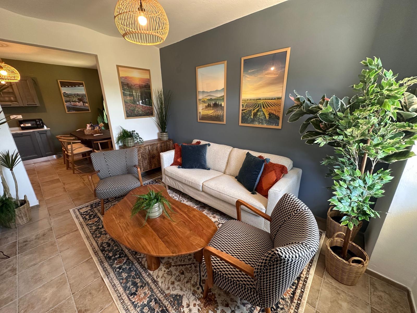 Sessame består af tre huse, som tilsammen giver plads til op til 20 personer. Det gør stedet oplagt for store familier, vennegrupper eller flere generationer, der ønsker at holde ferie sammen. Husene er totalrenoverede og indrettet med moderne komfort. Mellem husene ligger et stort fællesområde med pool og terrasser, hvor hele familien kan samles til hygge, måltider og afslapning. Alle tre huse har vaskemaskine og tørretumbler, og fra grunden kan du nyde den fantastiske udsigt over vinlandskabet.