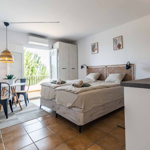Hacienda Competa offers a range of spacious and welcoming rooms that are bright and friendly with modern amenities. Each accommodation has a private bathroom and access to a private terrace or balcony overlooking the beautiful surroundings. Here you'll find the perfect setting for both relaxation and contemplation.
